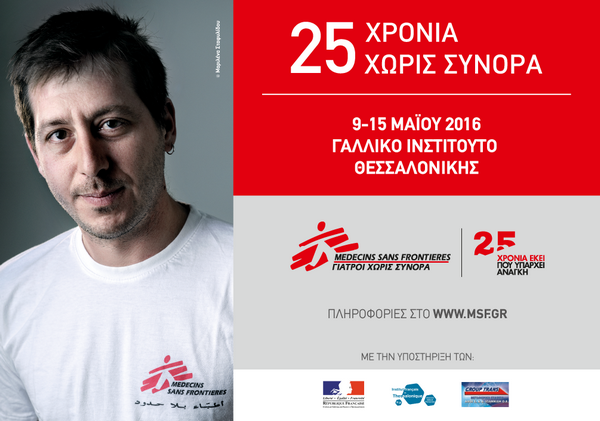 Την 25η επέτειο του Ελληνικού Τμήματος γιορτάζουν οι Γιατροί Χωρίς Σύνορα στη Θεσσαλονίκη από τις 9 έως τις 15 Μαΐου με σειρά εκδηλώσεων – έκθεση φωτογραφίας, προβολή ντοκιμαντέρ, ενημερωτική συνάντηση για συμμετοχή σε αποστολή- στο Γαλλικό Ινστιτούτο Θεσσαλονίκης (Λεωφ. Στρατού 2Α), με ελεύθερη είσοδο για το κοινό.