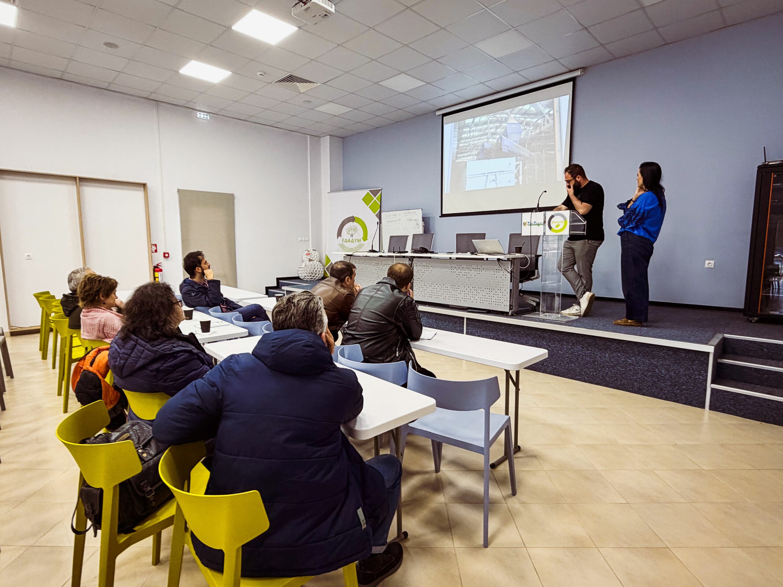 Παράλληλα, πραγματοποιήθηκαν παρουσιάσεις και ανταλλαγή εμπειριών σχετικά με ενεργειακές πρακτικές. Ιδιαίτερη αναφορά έγινε στην περίπτωση της Σαμψούντας όπου τα δημοτικά φωτοβολταϊκά πάρκα καλύπτουν το 60% των ενεργειακών απαιτήσεων της πόλης.