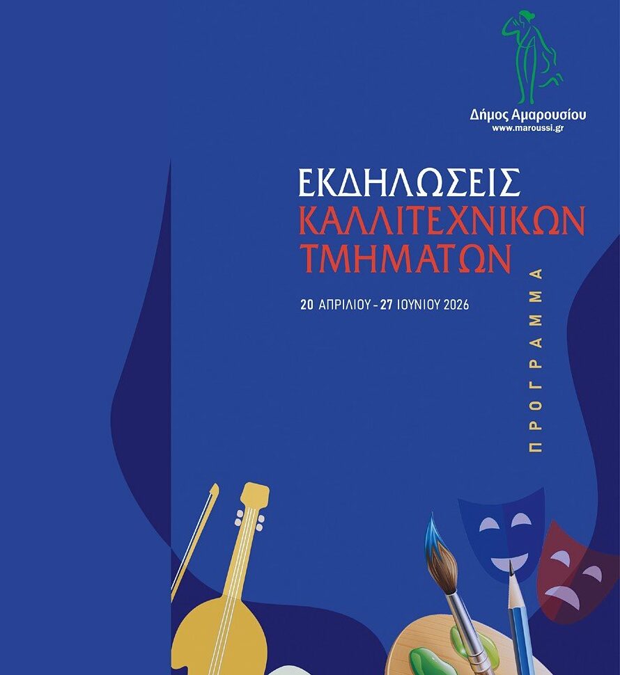 Ο Δήμος Αμαρουσίου ανακοίνωσε την έναρξη των καλλιτεχνικών εκδηλώσεων των τμημάτων του Κέντρου Τέχνης και Πολιτισμού για το 2026, παρουσιάζοντας ένα πλούσιο πρόγραμμα δράσεων που απευθύνεται σε όλες τις ηλικίες.
