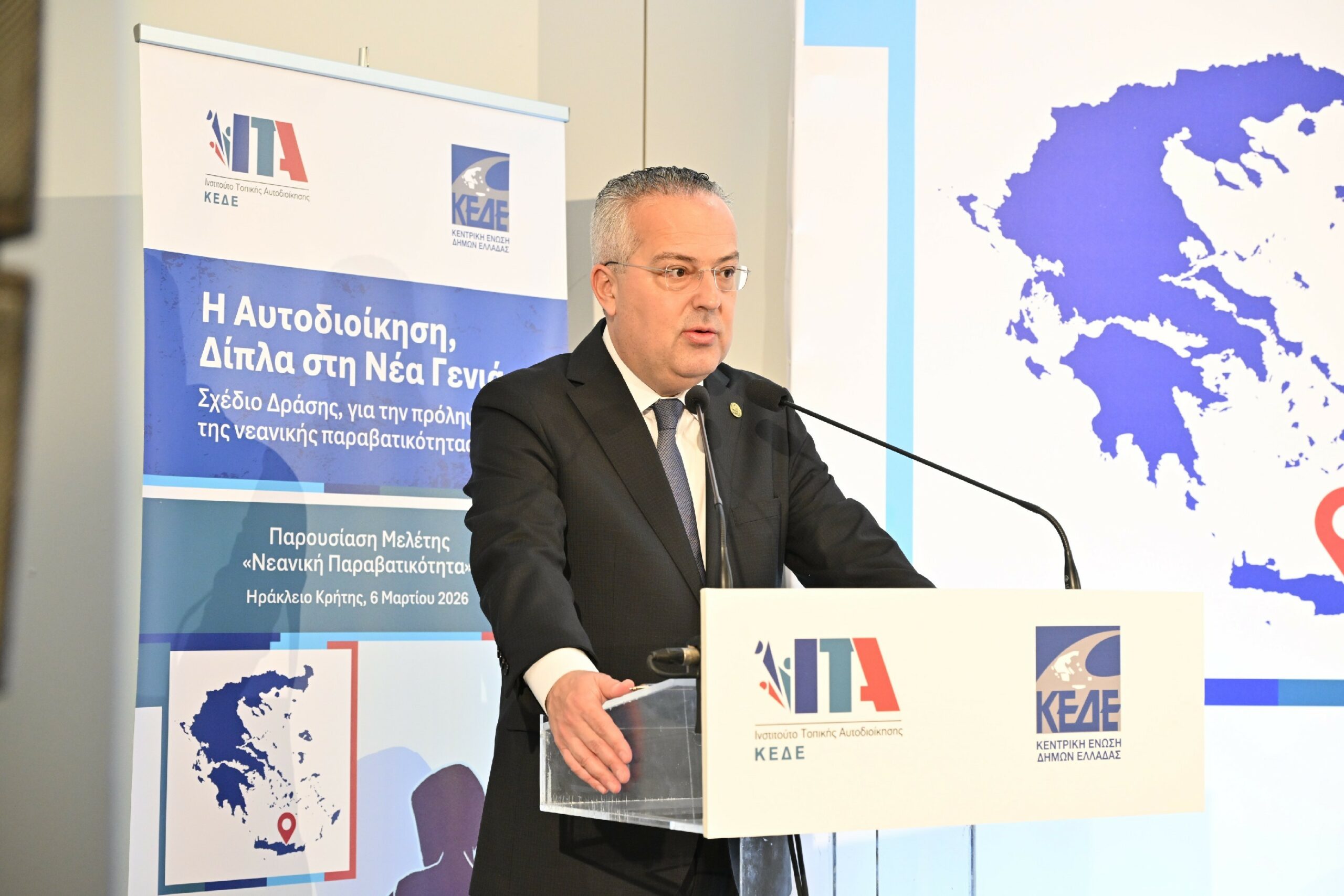 Με ισχυρό μήνυμα πρόληψης, συνεργασίας και ενεργού συμμετοχής της νέας γενιάς πραγματοποιήθηκε στο Ηράκλειο Κρήτης η ημερίδα της Κεντρικής Ένωσης Δήμων Ελλάδας (ΚΕΔΕ) και του Ινστιτούτου Τοπικής Αυτοδιοίκησης (ΙΤΑ) με θέμα τη Νεανική Παραβατικότητα, με τη συμμετοχή μαθητών του 1ου Γενικού Λυκείου Ηρακλείου και τη συμβολή κορυφαίων θεσμικών και επιστημονικών φορέων.