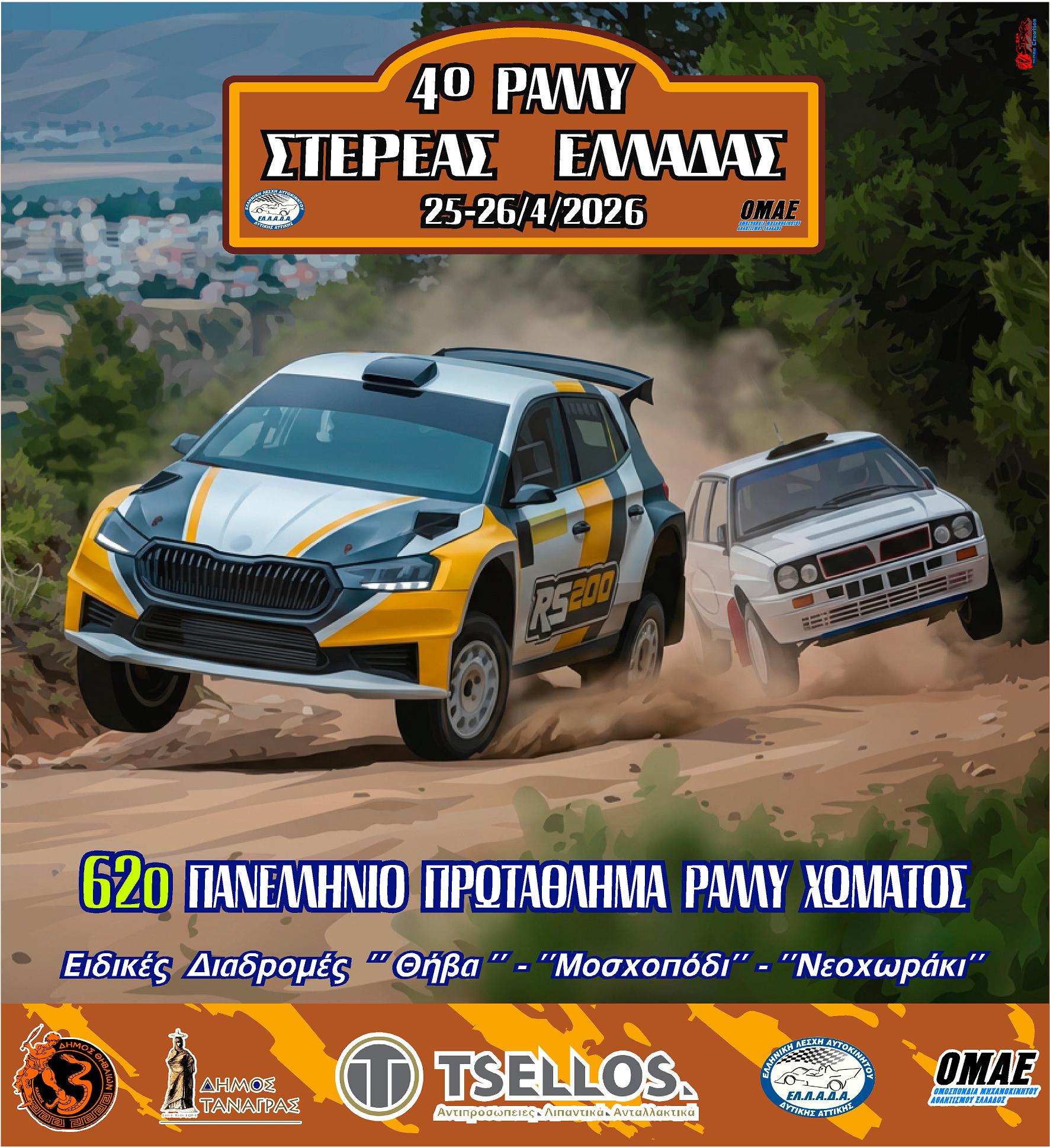Ο Δήμος Θηβαίων σε συνεργασία με το Σωματείο «Ελληνική Λέσχη Αυτοκινήτου Δυτικής Αττικής» (ΕΛ.Λ.Α.Δ.Α.) και τη στήριξη του Δήμου Τανάγρας, διοργανώνει το 4ο Ράλλυ Στερεάς Ελλάδας το διήμερο 25 και 26 Απριλίου 2026.