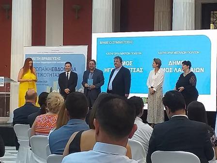 Η πόλη της Λάρισας βραβεύτηκε, ως η δεύτερη καλύτερη ελληνική πόλη, στην κατηγορία των μεγάλων πόλεων. Το βραβείο από τον υφυπουργό Περιβάλλοντος Δημ. Οικονόμου παρέλαβε ο αναπληρωτής δήμαρχος και αντιδήμαρχος Τεχνικών Έργων Γιώργος Σούλτης.